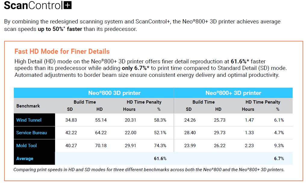 At the heart of the Neo®800+ 3D printer is ScanControl+™, an advanced technology which boosts print productivity and sharpness by fine-tuning laser power, movement, and focus.